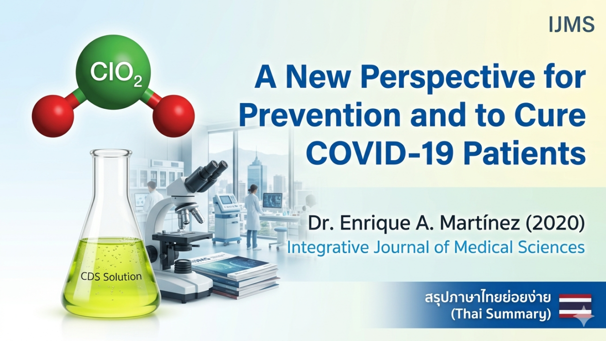 ท่ามกลางวิกฤตการณ์แพร่ระบาดของโรคโควิด-19 ที่ส่งผลกระทบต่อระบบสาธารณสุขและเศรษฐกิจทั่วโลก ความพยายามในการค้นหาวิธีการรักษาที่มีประสิทธิภาพและเข้าถึงได้ง่ายกลายเป็นภารกิจเร่งด่วนของเหล่านักวิจัย บทความเรื่อง “A New Perspective for Prevention and to Cure COVID-19 Patients” โดย ดร. เอ็นริเก เอ. มาร์ติเนซ ได้นำเสนอแนวคิดที่น่าสนใจเกี่ยวกับบทบาทของสารละลายคลอรีนไดออกไซด์ (Chlorine Dioxide in Solution หรือ CDS) ในฐานะทางเลือกใหม่ในการรักษา