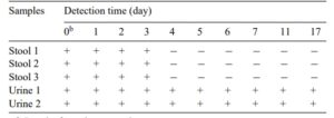 ลักษณะการคงอยู่ของ SARS-CoV ในอุจจาระและปัสสาวะ