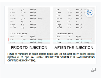 - ข้อสรุปทางคลินิก: ใช้ CDS บริสุทธิ์ 0.3% ปริมาณ 10-20 มล. ในน้ำ 1 ลิตร (ตามโปรโตคอล C) ตรวจสอบระดับแลคเตท (โดยการทดสอบเลือดแบบก๊าซเลือด) เพื่อยืนยันการกำจัดโดยไม่เกิดภาระออกซิเดชัน (CDS แบบอิเล็กโทรไลต์ดีที่สุด)