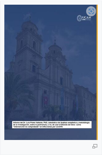 1 รายงานโดย ดร. หลุยส์ ปรีเอโต วาเลียนเต้, ปริญญาเอก, ศาสตราจารย์ด้านการวิเคราะห์สถิติและระเบียบวิธีวิจัย เกี่ยวกับความเกี่ยวข้องหรือไม่เกี่ยวข้องของการใช้ไดออกไซด์คลอรีนเป็น “การแทรกแซงที่ยังไม่มีหลักฐานรองรับ” ในการติดเชื้อโควิด-19